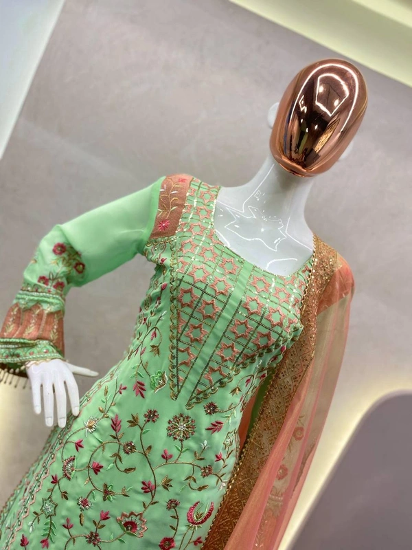 SEQUANCE EMBROIDERY WORK SUIT WITH STITCHED PANT AND DUPATTA