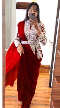 SUPER CORDING WORRK READY TO WEAR SAREE WITH FULL EMBROIDRED KOTI