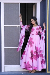 DIGITAL FLOWRREY PRINTED GOWN GOWN WITH DUPATTA