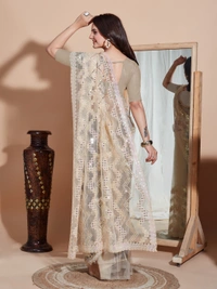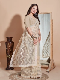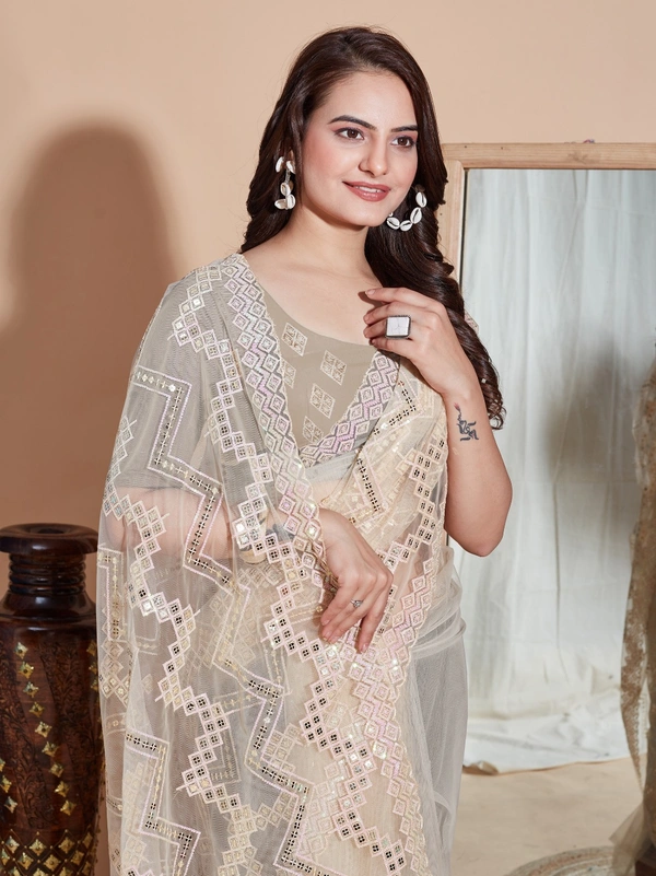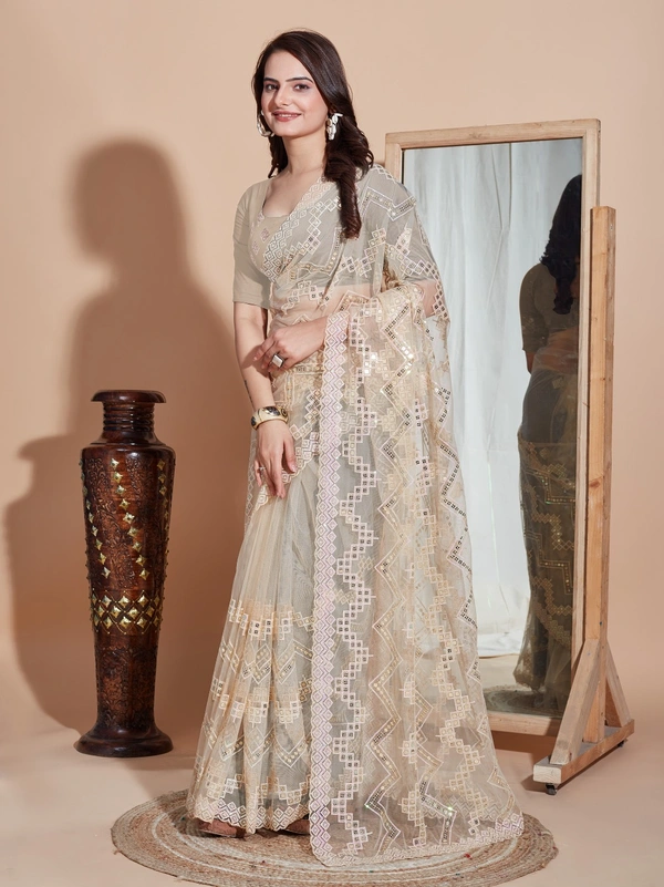 DESIGNER SOFT NET SEQUINS WORK SAREE WITH BLOUSE PIECE