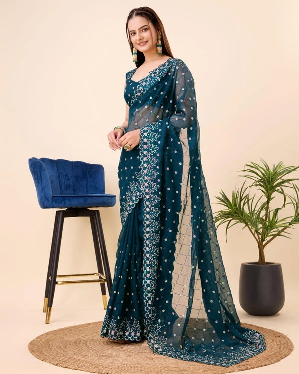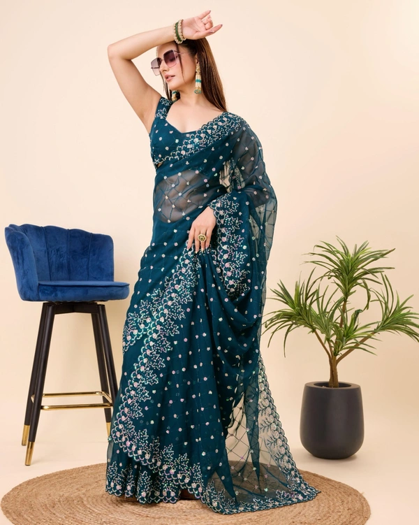 PARTY WEAR TABBY SILK ORGANZA SAREE WITH BLOUSE PIECE