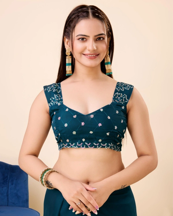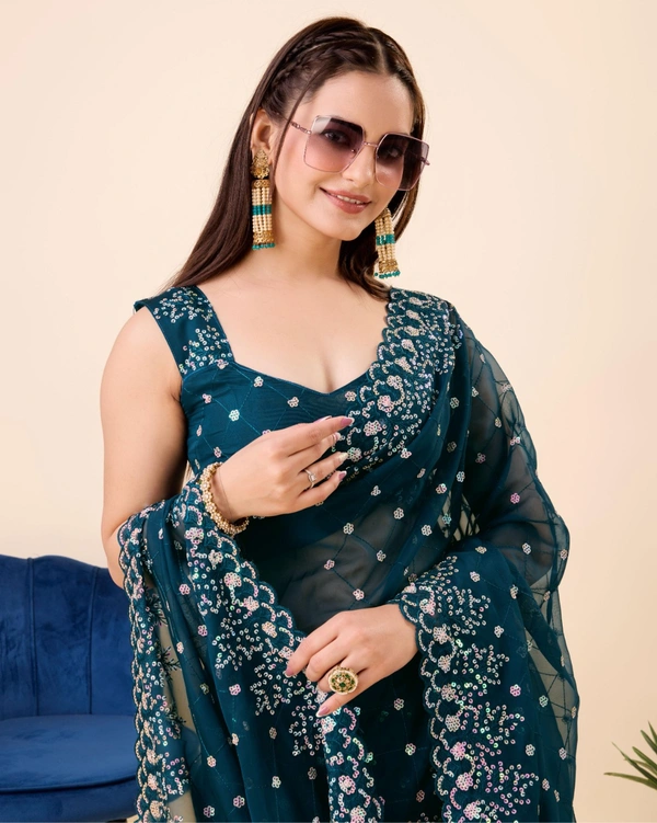 Looking some one for this same colour beautiful Saree for wedding on premium Soft Taby Silk Organza fabric with C-pallu All Over Embroidery Work Butti & piping Border and Embroidery Work blouse.